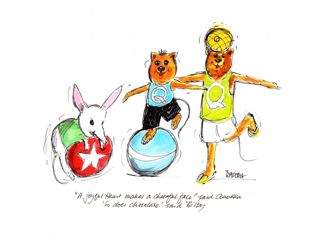 He is also a fan of E H Shepard and A A Milne the original creators of ‘Winnie the Pooh’ and thinks the books are really for adults, not children. He loves the ‘Pooh’ so much that he did a series of his own illustrations, with an Aussie flavour ‘The Quokka Bilby & Wisdom”.
